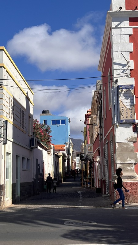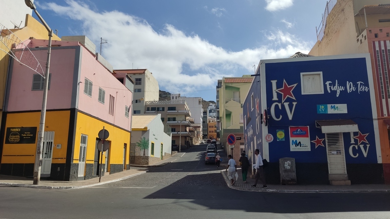 Rua de Lisboa, una de las calles más animadas de Mindelo, donde además de tiendas de souvenirs, cafeterías, bares y restaurantes, hay un pequeño