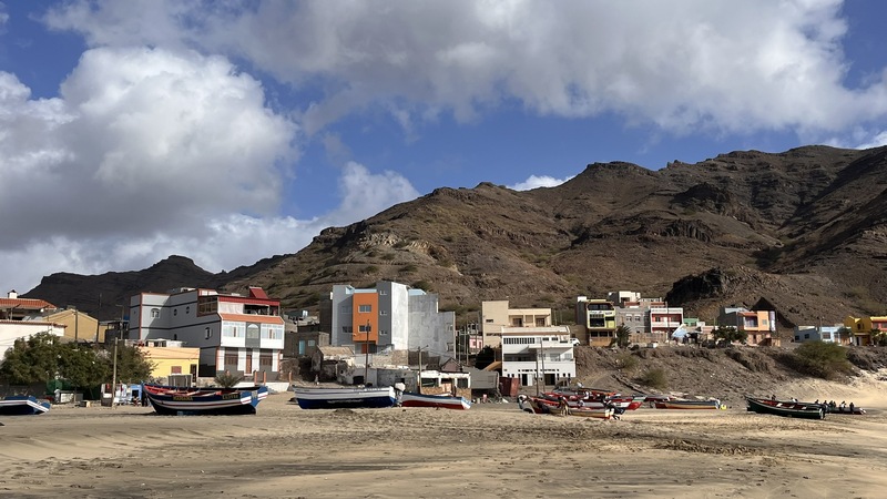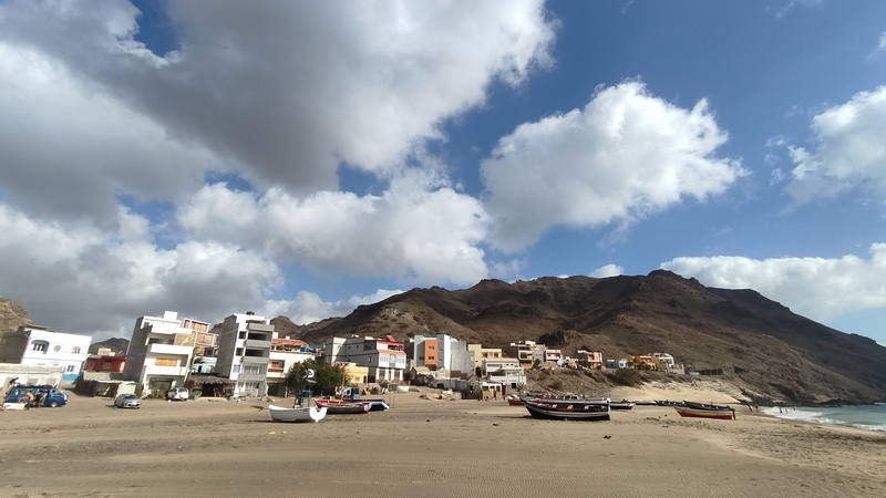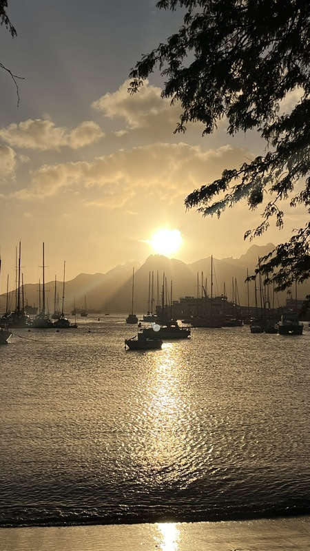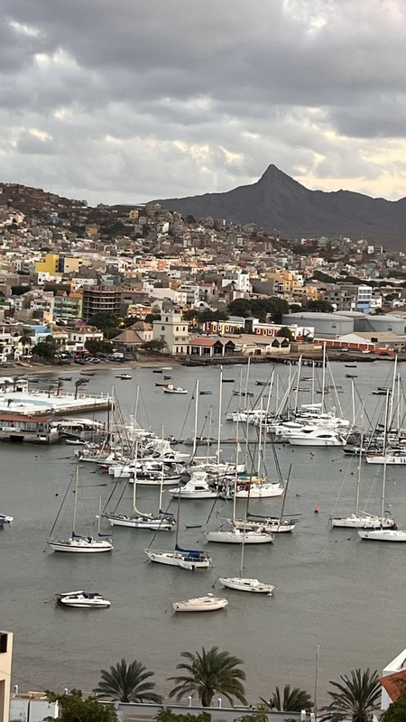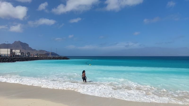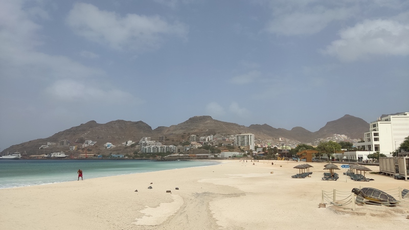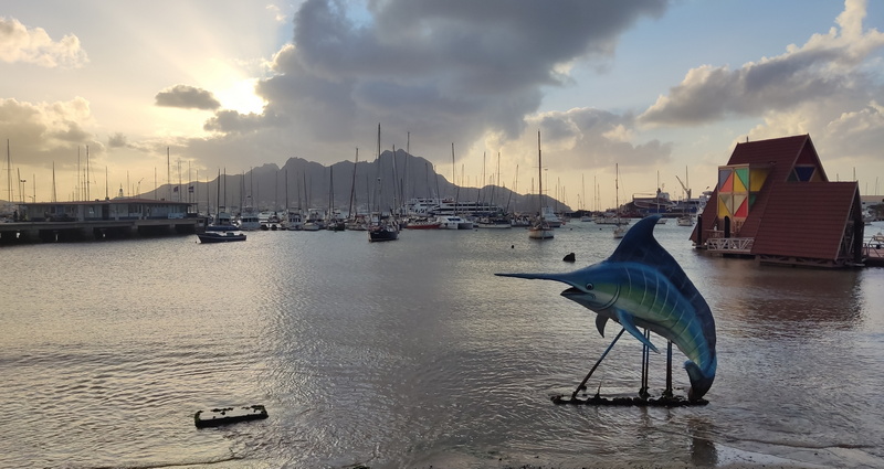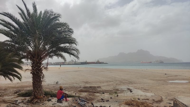 Cabo Verde Airlines que nos costó unos 80€. Existe también la opción de venir en ferry, pero solo hay un par o tres por semana, y además el viaje dura unas diez horas. Por otro lado, en invierno, durante los meses de diciembre, enero y febrero, los vientos son bastante fuertes en todo el archipiélago, y en ocasiones el mar está más bravo de la cuenta y el servicio de ferries queda suspendido, así que para asegurar el tiro optamos por el avión. Taxi desde el aeropuerto al centro de Mindelo, 12.000 escudos, tarifa oficial.