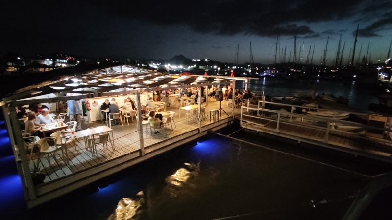 Marina Mindelo Floating Bar, bar flotante atestado de turistas donde disfrutar de unas cervezas con vistas al puerto y el atardecer.