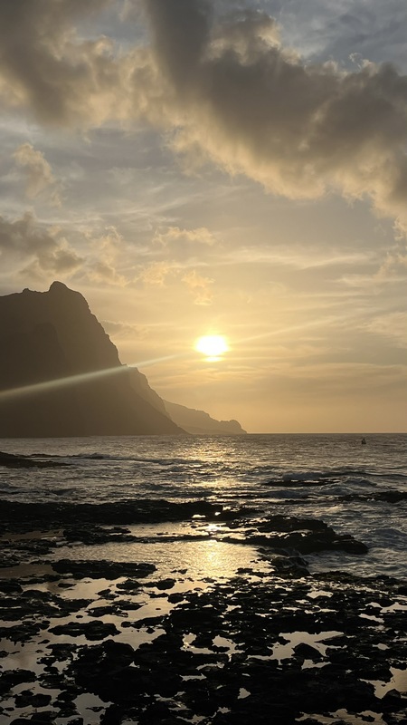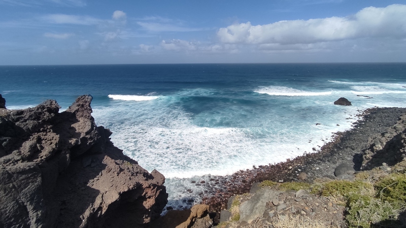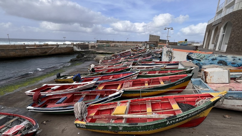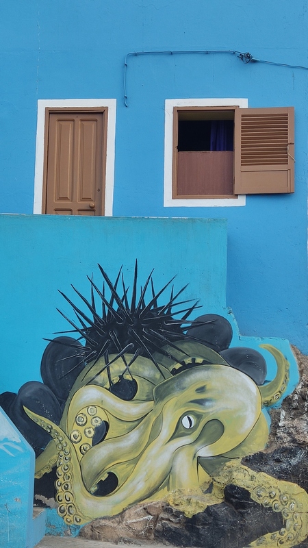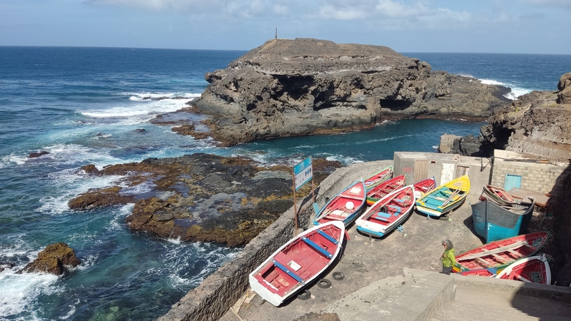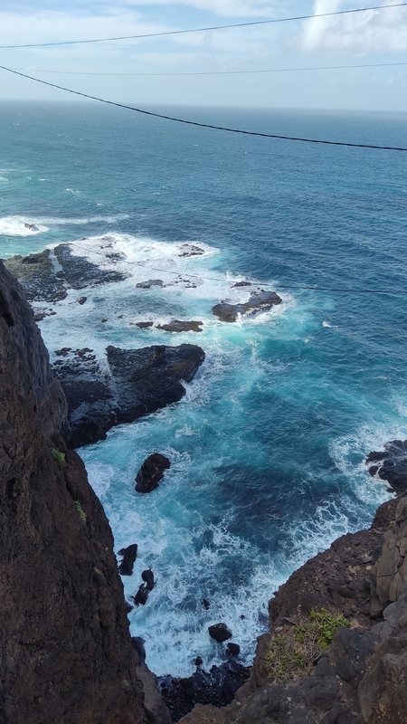 Unas escaleras, en el centro del paseo marítimo, nos llevan a una zona rocosa, plana, donde con escarpines sería posible adentrarse en el mar y darse un baño, si encuentras un día en que el oleaje lo permita. Aunque no especialmente bonito, es un pequeño pueblo pesquero, con un pintoresco y colorido puerto, un sitio más tranquilo y agradable que Ribeira Grande, aunque esta tiene pinta de tener mejor oferta de ocio (bares y música).
