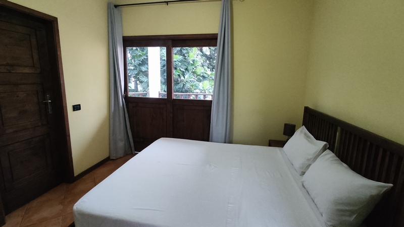 Oasis Paul Residencial, 70.000 escudos. Habitación doble austera, con baño privado y una magnífica terraza con vistas a un frondoso jardín interior. Justo al lado está