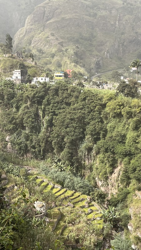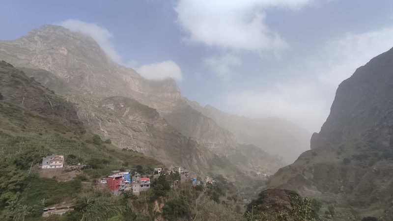 Santo Antao es la más occidental del grupo de barlovento y también la más verde. La zona occidental es seca, árida y está escasamente habitada; en la zona oriental una cordillera cruza la isla de norte a sur alcanzando una altitud de casi 2.000 mts, formando fuentes permanentes de agua, riachuelos, valles y cañones, donde los agricultores locales cultivan caña de azúcar, plátano café, yuca y algunas frutas tropicales en estrechas terrazas, o destilan el