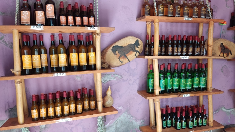 grogue, licor de caña de azúcar, y compramos un botellín de cinco años de 25 cl por 400 escudos, para amenizar las sobremesas.