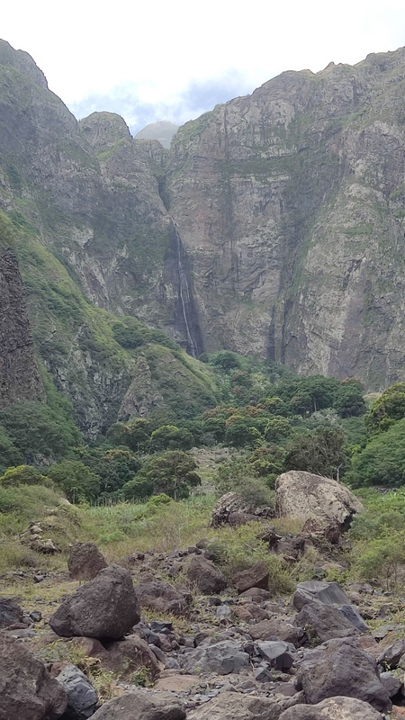 Spanader d'Neve, una cascada de agua que se precipita desde 120 mts de altura, en la cabecera del valle, frente a una gigantesca e infranqueable pared rocosa. Son tres kilómetros, un tercio de ellos por el margen pedregoso de un río, el resto cuesta arriba hasta el punto de caída del agua. Se atraviesan terrazas de cultivo, caña de azúcar, cobertizos con cerdos, cabras y vacas atadas para que pasten libres, pero sin alejarse demasiado, y agricultores locales trabajando la tierra. El último tramo, donde la pendiente es más pronunciada, hay coladas canalizando el agua que deja caer la cascada en el fondo del valle.