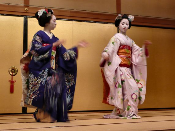 Cogemos un taxi hasta el barrio de Gion, una famosa zona de ocio y geishas en la orilla este del río Kamo. Aquí venimos a ver una representación de usos tradicionales japoneses, un espectáculo pensado para que los turistas puedan disfrutar de una introducción al arte y entretenimiento tradicional japonés. Es el