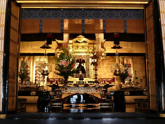 Templo Nishi-Honganji. Sede central de la facción Jodo-Shin, cuenta con 10.000 templos en todo el país y 200 en el extranjero. El Goei-do, salón del fundador y sala principal del templo, esta en obras. En otras salas pueden contemplarse pinturas y tallas ornamentales de diferentes materiales, entre las que se incluyen numerosos Tesoros Nacionales.