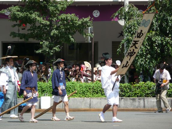 La procesión empieza a las 9:00 y recorre un total de 3 km a lo largo de las calles Shijo, Kawaramachi y Oike, donde entra la última carroza alrededor de las 13:25. Treinta y ocho carrozas recorren las calles de Kyoto buscando a los buenos espíritus, 29 carrozas