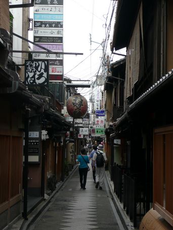 Pontocho. Es un estrecho callejón pegado al río Kamo donde las casas aún conservan el ambiente del Japón tradicional. La mayoría son bares, restaurantes, y casas de te. Dicen que es un buen lugar para ver