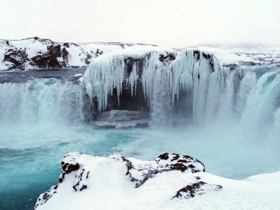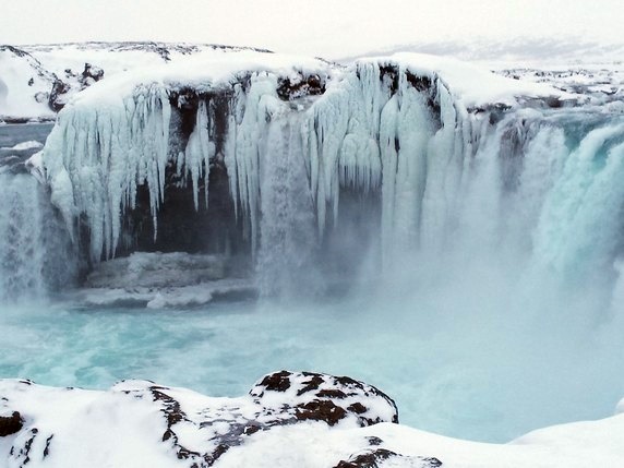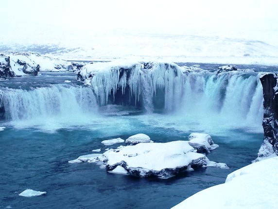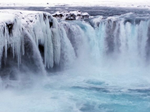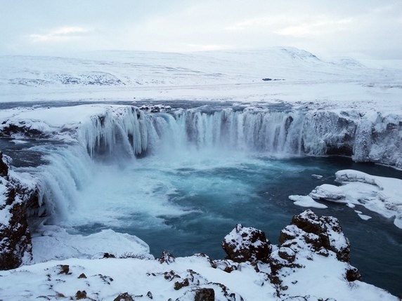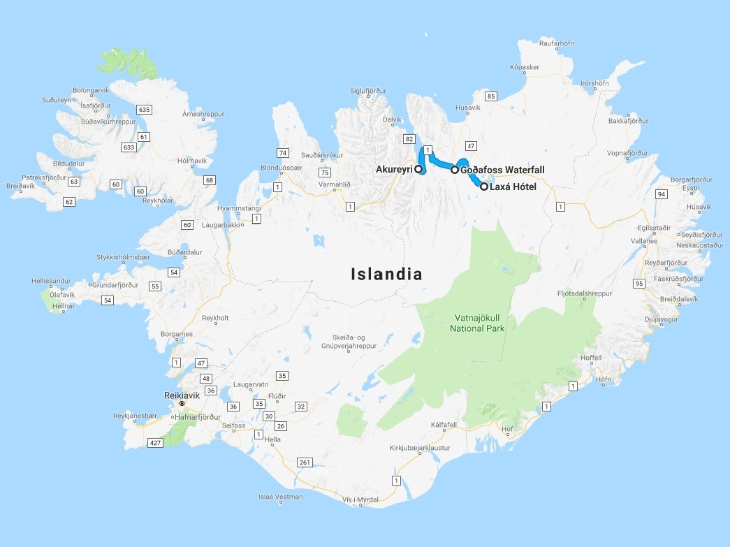 Goðafoss, la cascada de los dioses, llamada así porque cuando en el año 1.000 Þorgeir Ljósvetningagoði hizo del cristianismo la religión oficial de Islandia, arrojo sus estatuas de dioses nórdicos a la cascada. Alimentada por el río Skjálfandafljót, la catarata cae desde 12 mts de altura y tiene un ancho de 30 mts, estando dividida por una enorme roca en medio. Es la catarata más grande que hemos visto hasta ahora, o por lo menos la más poderosa. Ubicada junto a la Ring Road, que cruza sobre el río, puede verse desde ambos márgenes. Desde el lado izquierdo puedes acercarte mucho, tirarte a ella si quieres, pero la vista no es perfecta; desde el otro lado, un camino que sale de la gasolinera llega hasta un observatorio desde el que se tiene una vista global limpia.