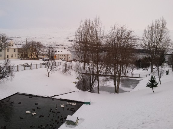 Madrugamos para llegar pronto a la piscina. Son las ocho y estamos a -3º. Akureyri tiene una de las