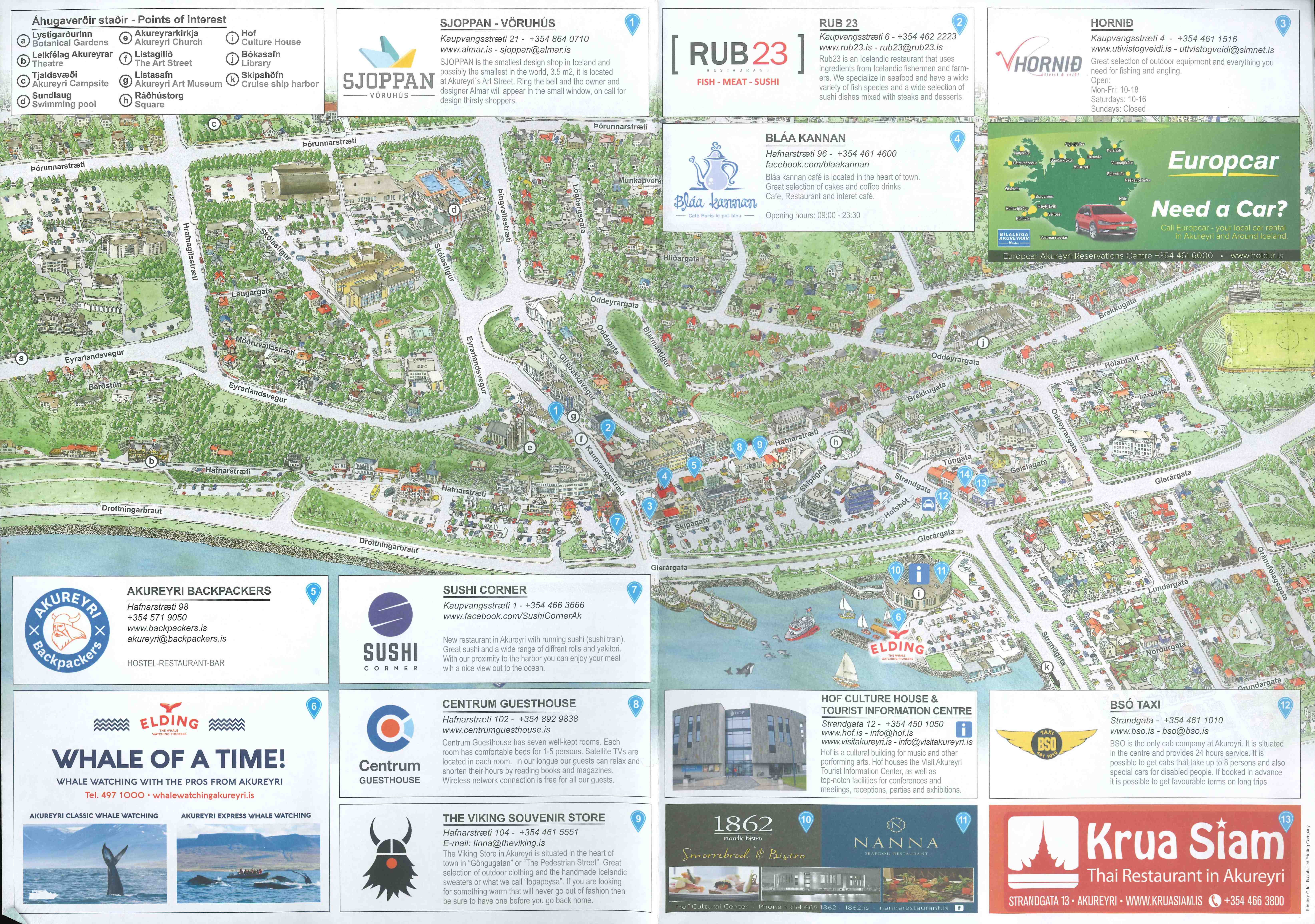 piscinas municipales (900 ISK) más grandes de Islandia. El complejo dispone de un total de seis piscinas descubiertas, dos de ellas de 25 mts con carriles habilitados para nadar, otra con dos toboganes de tubo completamente cerrados que bajan haciendo círculos y un tercero más pequeño descubierto, una piscina para niños pequeños que apenas cubre dos palmos, una para bebés de menos de un palmo de agua, dos más pequeñas con capacidad para seis personas a 39º y 43º, y por último una con