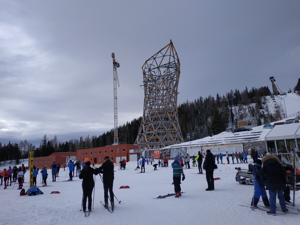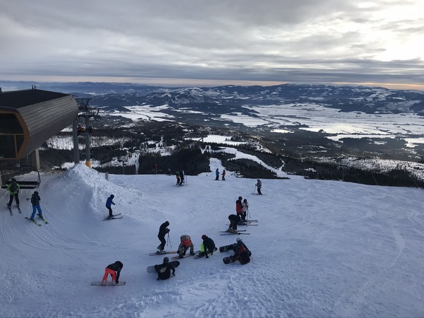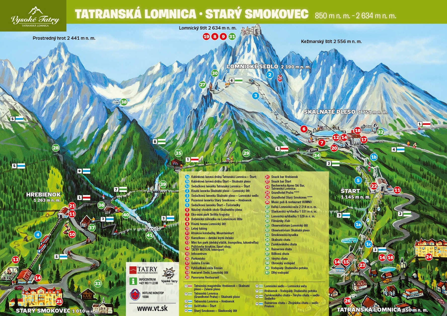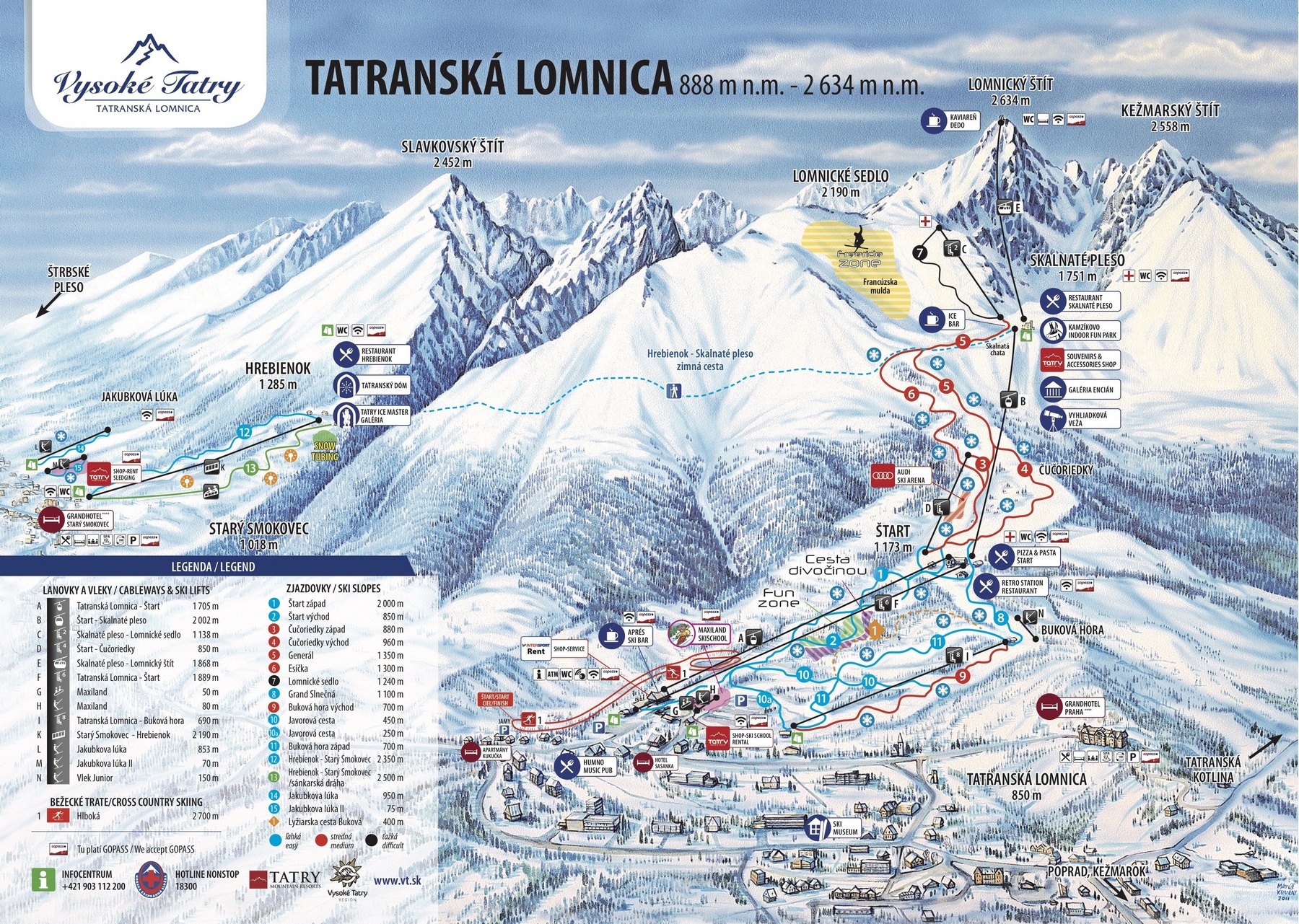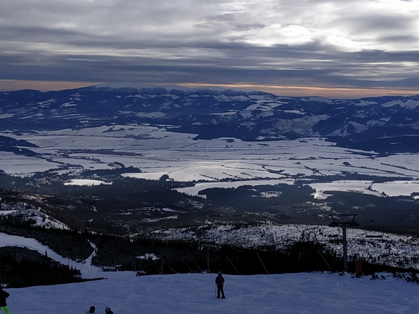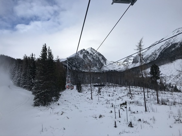 Desde el Sports Center salen varios telesillas hasta diferentes picos, donde se han habilitados pistas de esquí. Cogemos el que hace el recorrido más largo, 15€ cada uno, que lleva hasta Solisko, que con una altitud de 1.825 metros es la pista de esquí más alta del país. Desde la cima hay unas vistas impresionantes del monte Krivan y la cadena montañosa del Bajo Tatra.