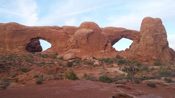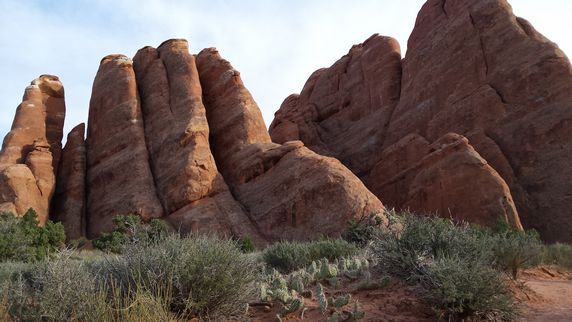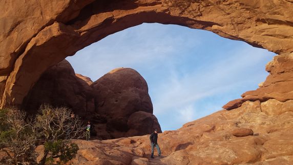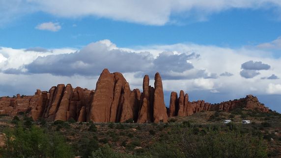 Arches NP debe agradecer a la erosión de 100 millones de años provocada por el movimiento subterráneo de sal, junto a las temperaturas extremas sobre el agua y el hielo, el poseer la mayor densidad mundial de arcos naturales. Más de 2.500 que van desde 1 mt hasta los 93 mts de Landscape Arch. Aunque gran parte de él se puede visitar en coche, hay fantásticas excursiones para realizar a pie, de entre 500 mts y 7 km. Las dos más interesante parecen las que llevan a Landscape Arch, el arco más ancho de América que vimos rodeados de chinos y sus ruidosas cámaras, y Delicate Arch, una larga caminata de 3h de la que desistimos para que no nos pillara la noche. Balanced Rock y Double Arch, ambos a pocos pasos de la carretera principal, son otras dos maravillas que no hay que perderse.
