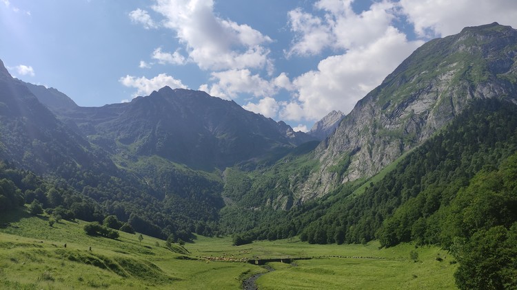 Uelhs deth Joeu y la Artiga de Lin; una extensión de prados que siguen sirviendo de pasto para el ganado, delimitados por bosques de haya y abeto que, por el colorido alcanzan su mayor apogeo en otoño y coronados por altivos picos: la Serra des Neres (linea de cimas que separa las cabeceras de los ríos Nere y Joèu), el mítico Malh des Pois o Forcanada (2.882 mts) ; reducto de rebecos, el Malh dera Artiga (2.712 mts); ombligo del valle y la Tuca Blanca de Pomèro (2.696 mts), que cierra este circo de impresionante belleza. La diversidad de plantas, flores y frutos, que varían en función de la época, hacen más exquisito el paseo.