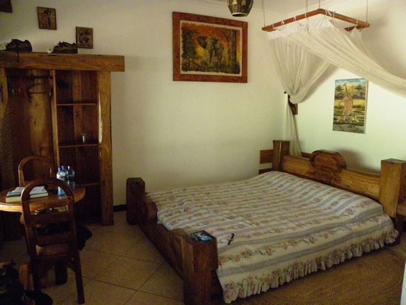 Jacaranda Hotel. 50$ Habitación amplia, limpia y luminosa, con baño y ducha de agua caliente. Cuenta con un campo de minigolf, una piscina sin agua, y un restaurante con terraza y jardín. Se encuentra en una zona silenciosa frente al Impala Hotel, a 10 minutos del centro, y protegido por una verja y un guarda de seguridad (