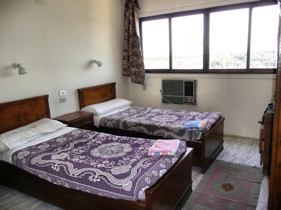 Memnon Hotel. 75 LE. En la corniche con vistas al Nilo. Hab. doble con baño completo y aire acondicionado. No es un lujo de limpieza, pero es cómodo y el personal amable. Piscina en la azotea.