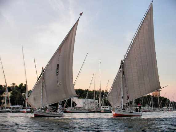 Al salir de las oficinas de Egypt Air nos asaltan los "capitanes" de falucas. El primero nos pide 25€ por hora, nosotros sabemos que el precio son 25 LE (siete veces menos), llega a 40 LE pero de ahí no baja. El segundo con el que tratamos esta más dispuesto a hacer negocios. El paseo dura unas dos horas, hay muy poco viento. Hoy toca acostarse pronto, mañana visitaremos Abu Simbel, nuestro objetivo al bajar hasta aquí, y avión a media tarde hacia Cairo. Nos iremos de Aswan sin ver la Isla Elefantina, el Obelisco Inacabado o el Cementerio Fatimí, pero hemos decidido cambiar el insoportable calor del sur de Egipto por la reconfortante brisa marina del Mediterráneo que nos espera en Alejandría.
