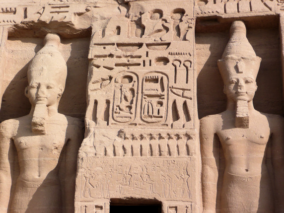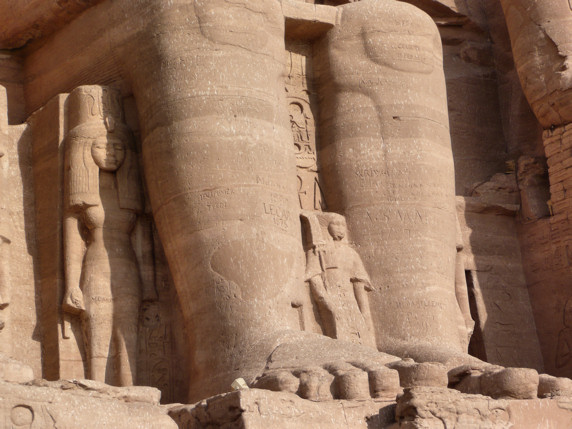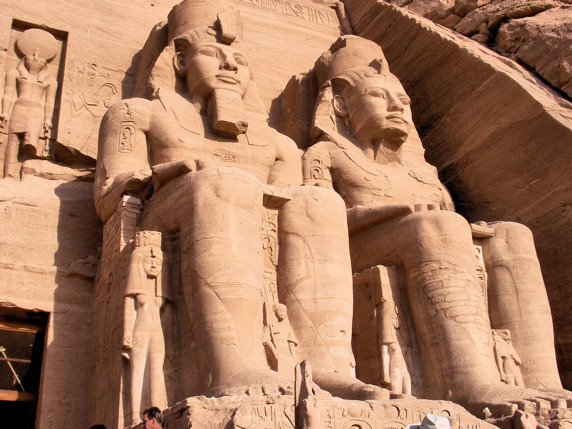 Abu Simbel (70/35 LE adulto/estudiante) es sin duda el templo por excelencia, la imagen que te viene a la mente cuando piensas en Egipto. El Gran Templo de Ramses II, es un templo mas bien tirando a pequeño excavado directamente en la roca. En la puerta hay cuatro estatuas de Ramses II sentado de 20 metros de alto, a su lado hay otras estatuas menores de sus esposas, hijos y algunos dioses. En el interior hay una gran sala de 65 metros de largo con ocho pilares provistos de imágenes de Ramses II con apariencia de Osiris. Las paredes están llenas de relieves representando batallas y el techo esta adornado con buitres con las alas desplegadas. Al final se encuentra el Santuario Sagrado con cuatro imágenes de dioses sentados. En esta sala solo entra el sol dos veces al año, el 21 de octubre (nacimiento de Ramses II) y el 21 de febrero (día de su coronación)!!! Ramses II mando construir a pocos metros un templo consagrado a Hator, la diosa del amor, dedicado a su esposa la Reina Nefertari. Hay también cuatro estatuas en la entrada, aunque de menor tamaño. El templo se adentra 35 metros en la roca, y sus relieves y dibujos se conservan en muy buen estado.