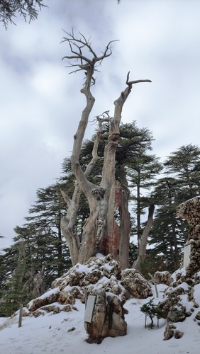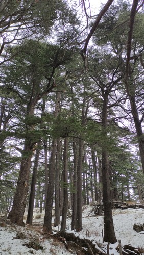 Bosque de los Cedros de Dios y la estación de esquí que se encuentra junto a él, la más elevada del país. Antiguamente los montes del Líbano estaban cubiertos de cedros, pero desde la época de los asirios la tala ha sido constante y hoy en día quedan algunos pequeños bosques en áreas aisladas. A finales del siglo XIX se levantó un muro para proteger este grupo de árboles, y convertirlo en un espacio protegido gestionado por el Patriarcado Maronita. El acceso es gratuito, se requiere la voluntad, y puede visitarse por libre. Es bastante interesante, sobre todo cubierto de nieve, pasar bajo árboles que alcanzan los 35 mts de altura y troncos de hasta 10 mts de diámetro.
