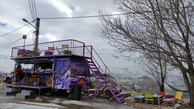 food truck con unas vistas espectaculares del valle. Hot chocolate, infusión y crepé de Nutella, 260.000 LBP