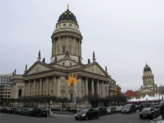 Gendarmen Markt, en el barrio francés. Es una plaza llena de edificios de los siglo XVIII y XIX, con dos catedrales casi idénticas (una alemana y otra francesa) separadas por apenas 250 metros.