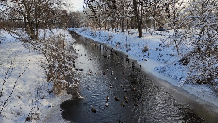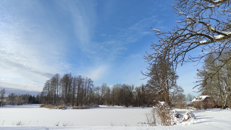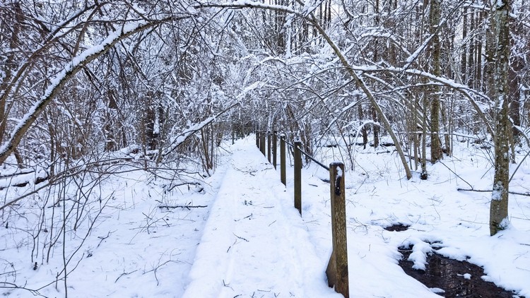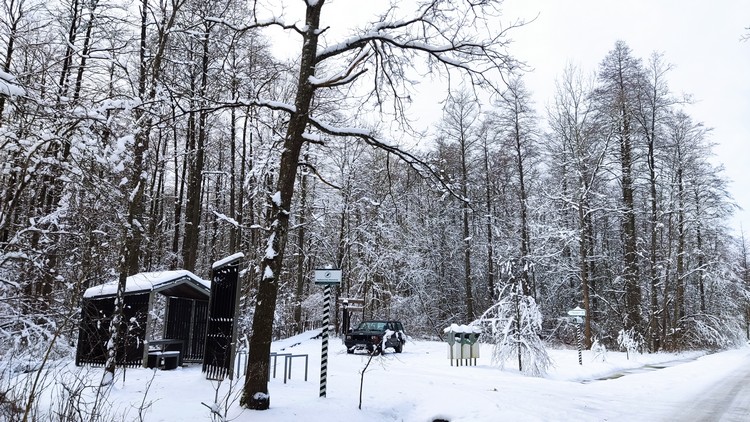 mapa), ofrece todo tipo de ayuda e información para desplazarse por el parque, tanto rutas en coche, como rutas a pie por los numerosos senderos. Después de una caminata de 1h30 hasta unos humedales que se encuentran parcialmente congelados (estamos a -7º), seguimos una carretera que recorre el parque dirección sur hasta Laskowiec.