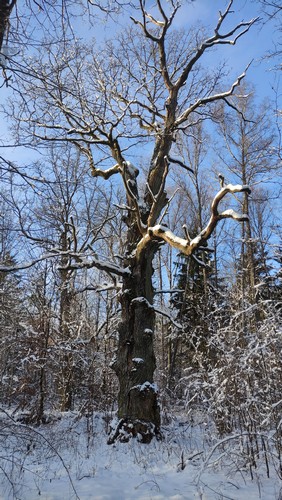 A unos 10 km de Bialowieza está Oak Tree Trek, un pequeño sendero circular que transcurre sobre una pasarela. El bosque que atraviesa está formado básicamente de tilos y robles centenarios de gran altura, cada uno de los cuales ha sido bautizado con el nombre de un rey, reina o príncipe local. Prestar atención a Bartny, un roble caído alrededor del año 2000 cuyo tronco tiene un diámetro de más de seis metros. Intentamos localizar más senderos, pero no es fácil pues todo el paisaje está nevado y es complicado ver las pasarelas, de hecho es muy difícil distinguir entre un parking y un campo o lago cubierto por la nieve o el hielo. Desistimos. Tomamos rumbo a Bialystok, devolvemos el coche y cogemos un tren a las seis con destino a Gdansk.