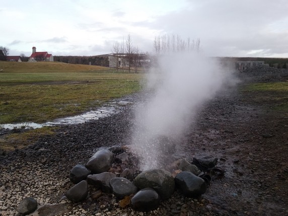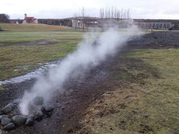 Krauma Geotermal Baths, 3800 ISK, un complejo de aguas termales. Antes de entrar en él se pasa junto al manantial Deildartunguhver, del que fluyen 180 litros por segundo a una temperatura de 97º. Esta agua es canalizada hasta las ciudades de Borgarnes (34 km) y Akranes (64 km). Antes de llegar a los baños el agua es enfriada con agua proveniente de un glaciar cercano, quedando el agua de sus cinco pequeñas piscinas entre 38º y 45º. Dispone a demás de otra piscina con