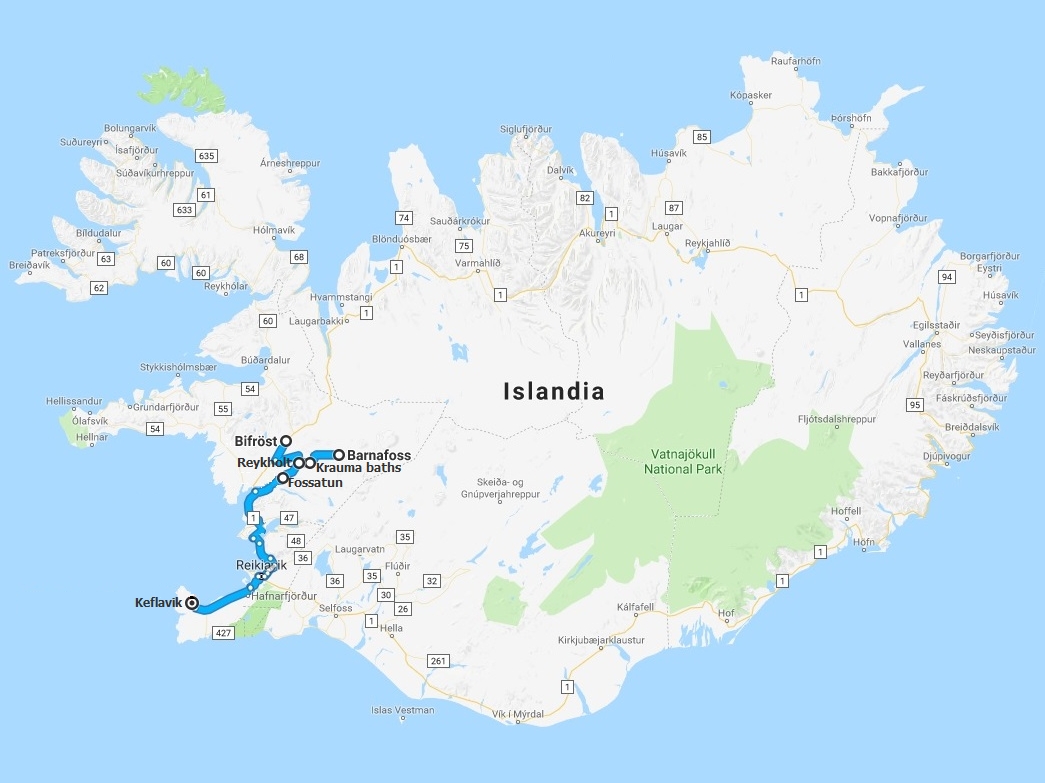 Nuestra intención durante estos quince días es circundar la isla siguiendo la Ring Road. Lo hacemos en el sentido de las agujas del reloj, ya que en varios foros hemos leído que en invierno es la mejor opción. Hoy nos dirigimos a