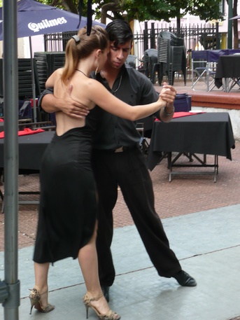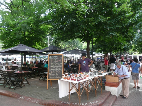 San Telmo, uno de los barrios mas antiguos de Buenos Aires. Casas centenarias, iglesias, museos, mercados y calles empedradas que me recuerdan un poco al barrio de Gracia de Barcelona. El centro del barrio es la Plaza Dorrego, conocida por el "mercado de pulgas" que se celebra todos los domingos. El centro, a la sombra de unos frondosos árboles, lo ocupan vendedores ambulantes y terrazas con espectáculos de tango. Tomamos unas cervezas en una de ellas. Alrededor de la plaza hay varios cafés y comercios, entre ellos una tienda de Havanna donde compramos los primeros alfajores para regalar.