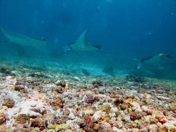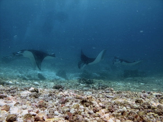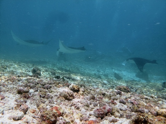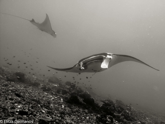 , prof. 14 mts, temp. 27º, vis. 10 mts. Este banco de arena y piedras salpicado por unos pocos corales vivos es una zona de reunión de mantas de hasta 4 mts de largo, visibles desde el propio barco. Es una zona de fuertes corrientes, cuanta mas allá mas mantas podremos ver, y en ocasiones cuesta encontrar un lugar donde cogerse para tener una buena visión. Además de una docena de mantas vimos una tortuga,