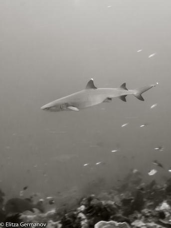 whitetip shark de un par de metros merodea entre nosotros, también vemos