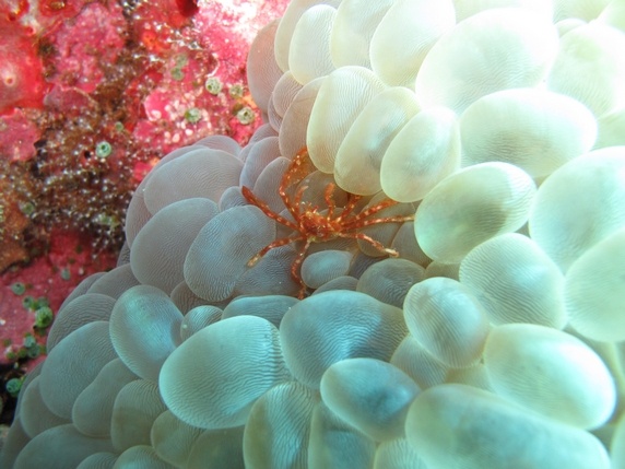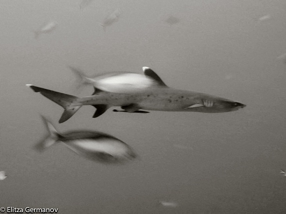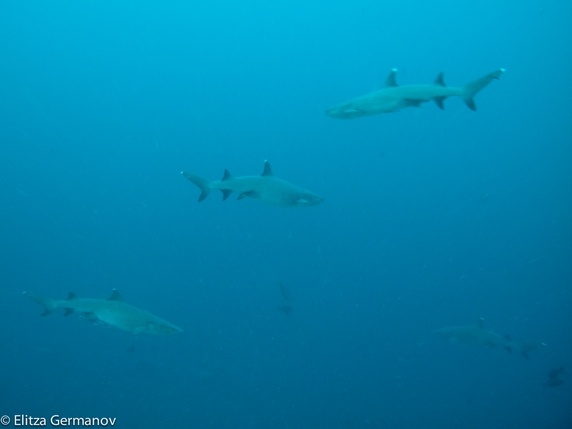 short-fine spotted fish entre otros. La corriente es muy fuerte, y durante la parada de seguridad, agarrados a alguna roca como buenamente podemos, parecemos banderas izadas por el viento.