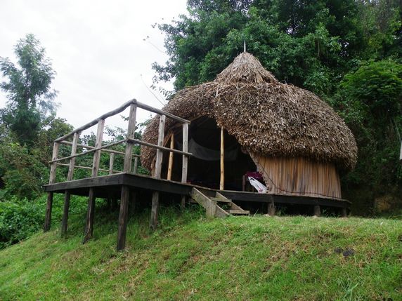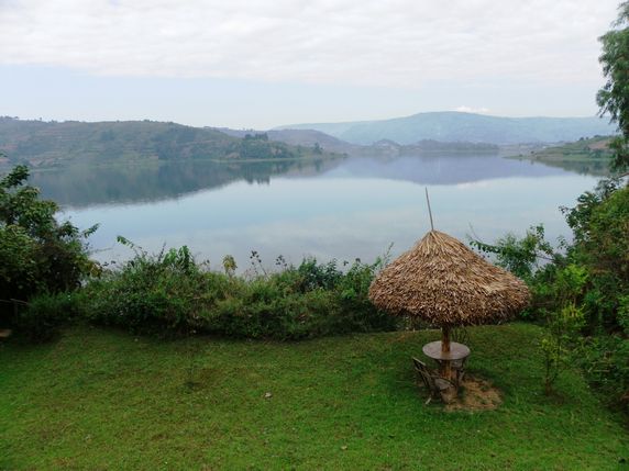 Nos levantamos con el sol, sin prisas. Aquí hay poco que hacer una vez ha anochecido. A las siete desaparece el sol y en media hora la oscuridad es absoluta. Entonces solo queda cenar y leer un poco hasta que apaguen la luz, que funciona de 19:00 a 22:00. Incluso levantandote con el sol, a las 6:30, es fácil dormir entre 8 y 9 horas. Nos duchamos con agua fría, que a 14º de temperatura exterior, esta muy fría. Mas tarde nos enteramos de que por 10.000 shs te calientan 10 litros de agua. Desayunamos huevos fritos con tostadas, y disfrutamos de nuestra terraza y jardincito privado con vistas al lago.