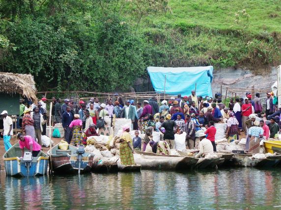 El acontecimiento mas animado es el colorido mercado semanal de Rutindo, que atrae a flotillas de canoas cargadas con cestas de vegetales y otras mercancías.