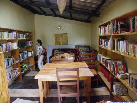 Encargamos agua caliente para la ducha, 10 lt = 10.000 shs, cantidad suficiente para dos personas. Tardan entre 45 y 60 minutos en calentarla. Desayuno: spanish omelette, y amagara crepes (rellenos de frutas varias). El resto del día lo pasamos en la cabaña, leyendo, escribiendo, sacando fotos. Damos un pequeño paseo, nos acercamos a la biblioteca y cogemos un libro cada uno.