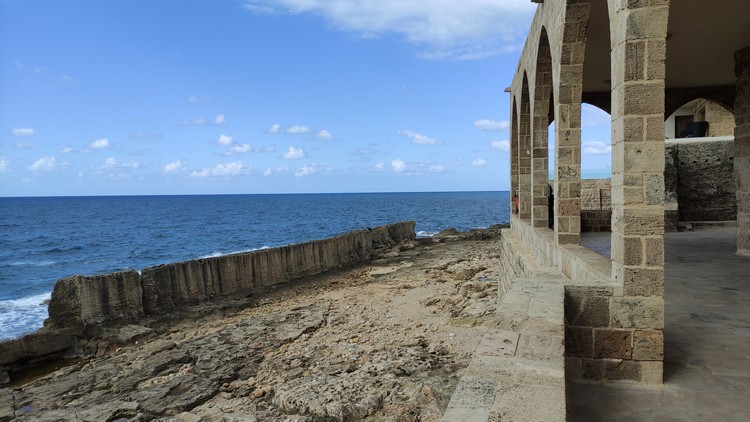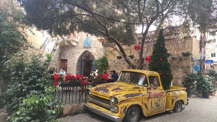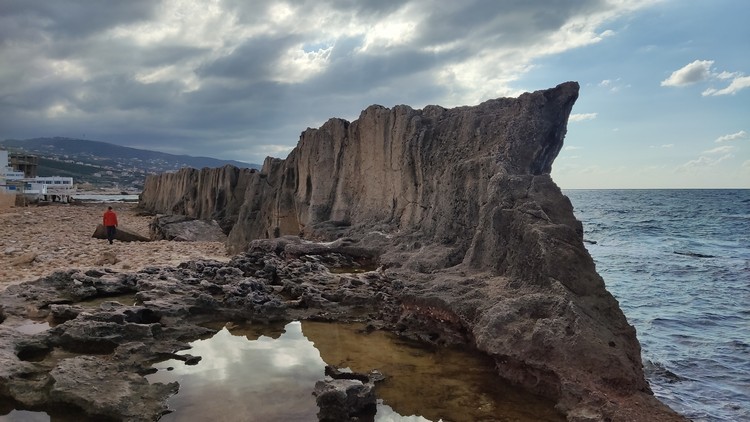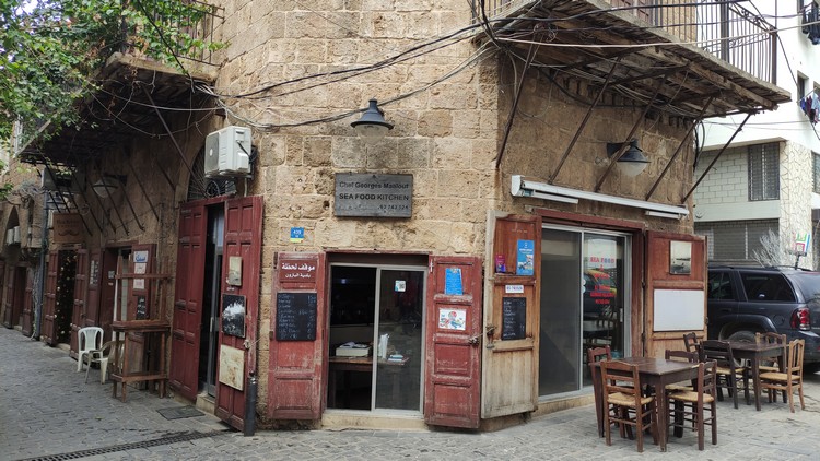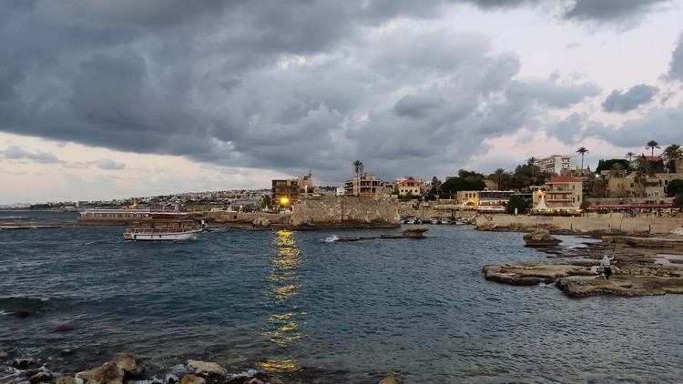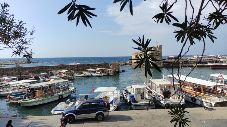 Abou Hassan, huevos fritos, revoltillo de huevos con kwarma y dos tés, 340.000 LBP. Tomamos un taxi (200.000 LBP) hasta la parada de autobuses de Charles Helou, 200.000 LBP, un cruce debajo de un puente donde aguarda un minibús para 20 personas, con un cartel que pone Trípoli, 30.000 el viaje a Byblos (Jbali), una hora aproximadamente. El bus te deja en la autopista, hay unos 2 km hasta el puerto, no conociendo el camino lo mejor es coger un taxi (100.000 LBP).