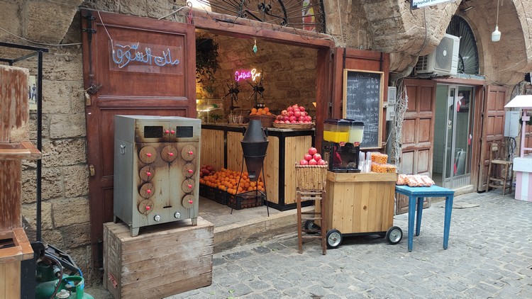 shawarma, fattouch (ensalada de pepino, tomate, perejil, menta fresca y dados de pita tostada), agua litro y medio, 550.000 LBP.