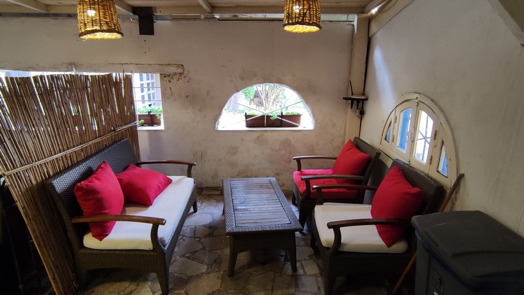 Ellie's yard, lo que parece una casa familiar con un agradable y tranquilo patio interior donde sirven comidas.