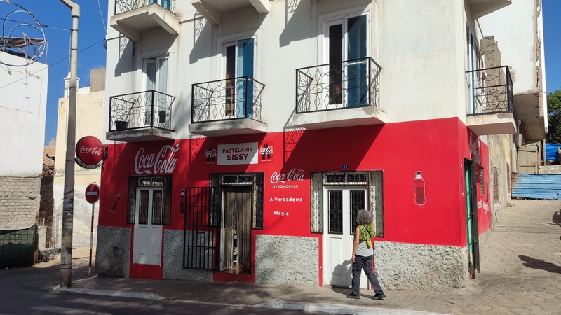 Rua de Lisboa, una de las calles más animadas de Mindelo, donde además de tiendas de souvenirs, cafeterías, bares y restaurantes, hay un pequeño