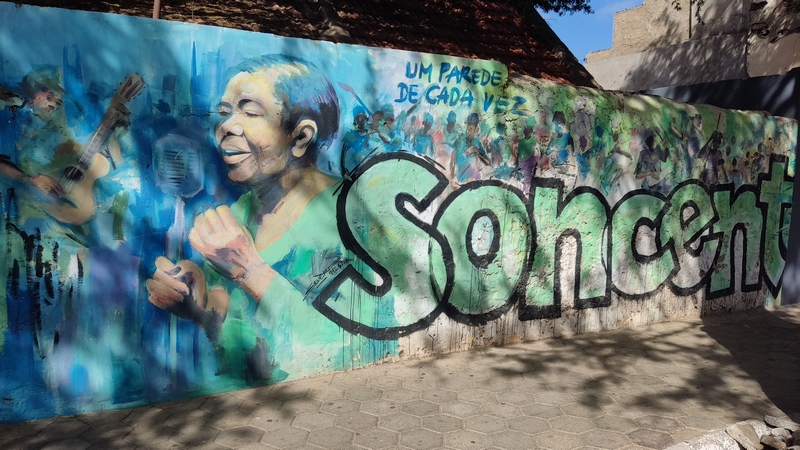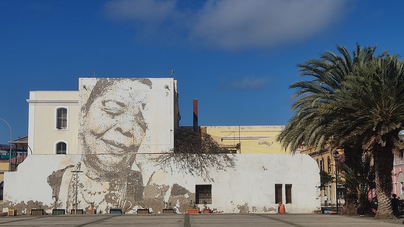 Paseo de la Fama. Una veintena de placas representado la pisada de un pie desnudo, nos recuerdan nombres de cabo verdianos famosos, nosotros solo conocemos Cesaría Evora.