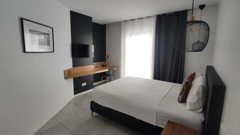 Prassa 3 (80€), moderno y muy cuidado. Habitación amplia con baño privado y un pequeño balcón. Buena wifi, desayuno buffet libre espléndido. El único pero es que el colchón es muy blando.