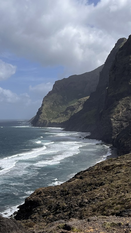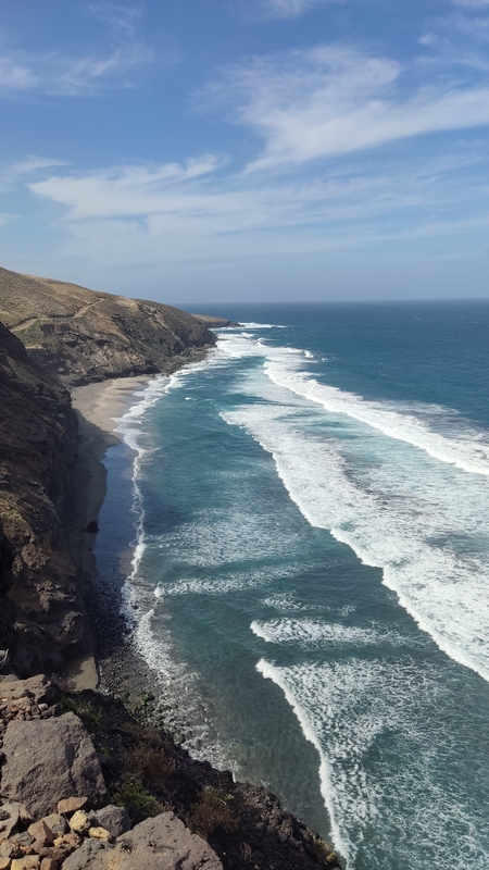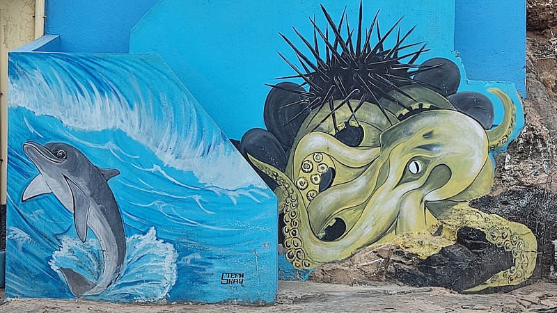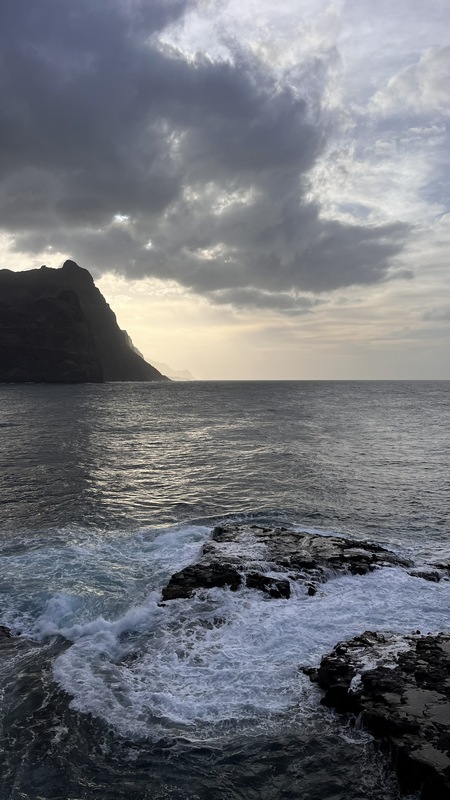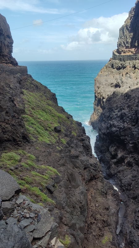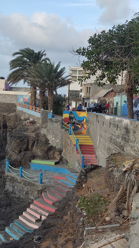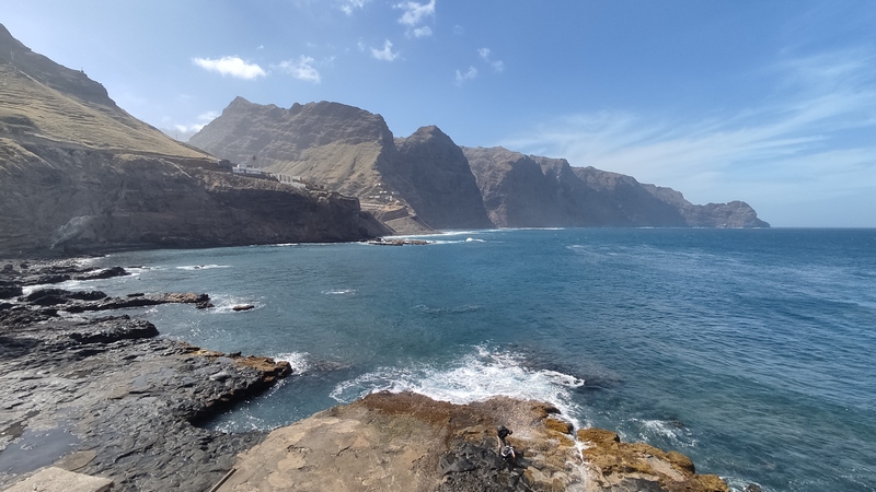 Unas escaleras, en el centro del paseo marítimo, nos llevan a una zona rocosa, plana, donde con escarpines sería posible adentrarse en el mar y darse un baño, si encuentras un día en que el oleaje lo permita. Aunque no especialmente bonito, es un pequeño pueblo pesquero, con un pintoresco y colorido puerto, un sitio más tranquilo y agradable que Ribeira Grande, aunque esta tiene pinta de tener mejor oferta de ocio (bares y música).
