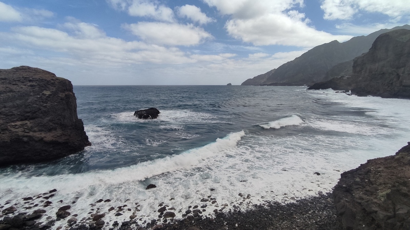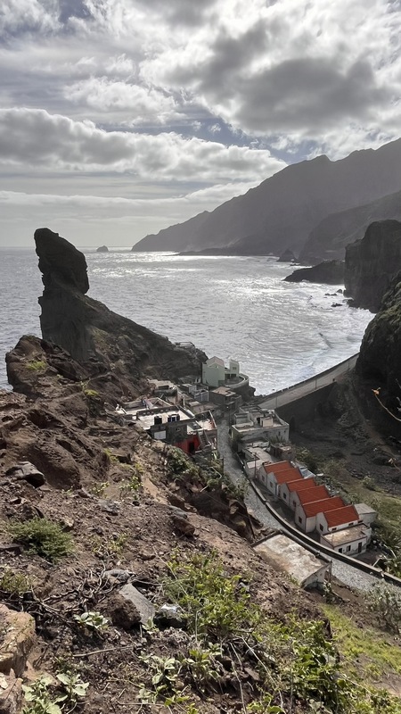 Caminata de Paul a Pontinha de Janela, toda ella por camino asfaltado, aunque la carretera sube y baja todo el tiempo, es un trayecto poco exigente, fácil y cómodo. A la izquierda el mar, a la derecha las montañas, cruzamos un par o tres de pequeñas poblaciones, mientras admiramos las espectaculares vistas de la costa y el bravo océano Atlántico.