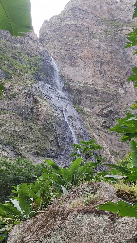 Spanader d'Neve, una cascada de agua que se precipita desde 120 mts de altura, en la cabecera del valle, frente a una gigantesca e infranqueable pared rocosa. Son tres kilómetros, un tercio de ellos por el margen pedregoso de un río, el resto cuesta arriba hasta el punto de caída del agua. Se atraviesan terrazas de cultivo, caña de azúcar, cobertizos con cerdos, cabras y vacas atadas para que pasten libres, pero sin alejarse demasiado, y agricultores locales trabajando la tierra. El último tramo, donde la pendiente es más pronunciada, hay coladas canalizando el agua que deja caer la cascada en el fondo del valle.