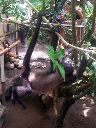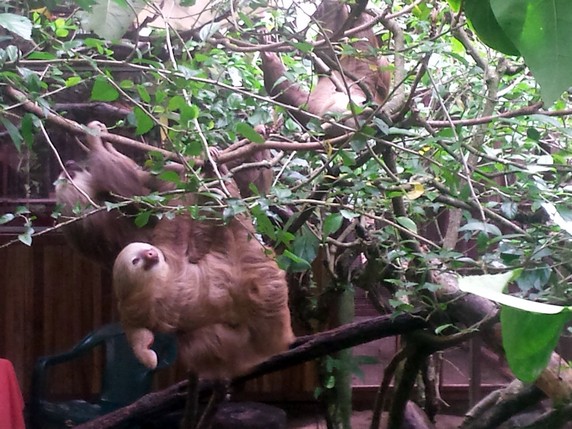 Jaguar Rescue Center Foundation, acceso 20$. Es un centro cercano a Puerto Viejo dedicado al rescate y rehabilitación de animales maltratados, heridos, huérfanos o confiscados, muchos proceden de accidentes de tráfico, electrocuciones en el tendido eléctrico, invasión de la propiedad privada, tráfico de animales, cacería furtiva… en fin, todos los peligros, conscientes o inconscientes, a los que los humanos sometemos a la fauna salvaje cuando invadimos su territorio. Hay todo tipo de huéspedes: mamíferos, pájaros, reptiles y anfibios. Una vez el animal es completamente rehabilitado, se intenta la reintroducción en su hábitat natural en áreas protegidas dentro de Costa Rica. Se realizan visitas guiadas de dos horas de duración a través de diferentes secciones, la explicación es amena y didáctica, vemos: serpientes, monos perezosos, zarigüeyas, monos araña, monos aulladores, monos capuchinos, tucanes, osos hormigueros, agutíes, ocelotes… Una actividad muy recomendable, apta para todos los públicos y edades. La tienda de