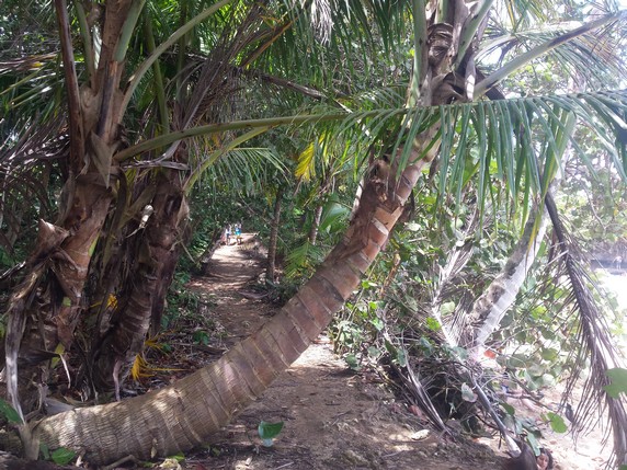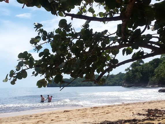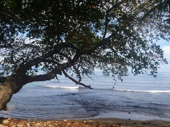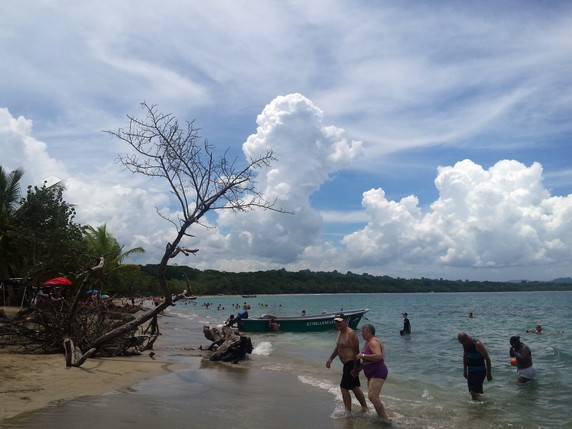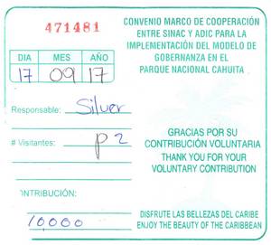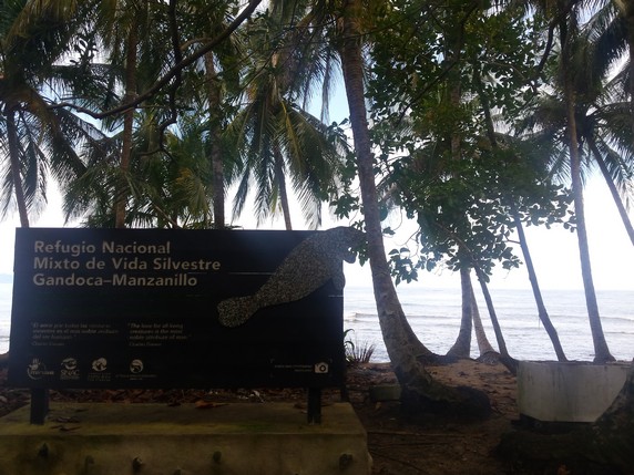acceso la obligada voluntad, nosotros dimos 10.000 colones por los dos. Hay un sendero paralelo a la costa de poco más de 8 km. En el primer tramo (1,5 km) hay fácil acceso a las playas de arenas blancas con tranquilas y cristalinas aguas turquesa, bordeadas de un sin fin de cocoteros. Son playas aptas para el baño, aunque siempre hay que tener cuidado con las fuertes corrientes. En las zonas destinadas para realizar esnórquel, dentro del arrecife coralino, habitan una amplia variedad de coloridos peces tropicales, tiburones de arrecife y rayas.