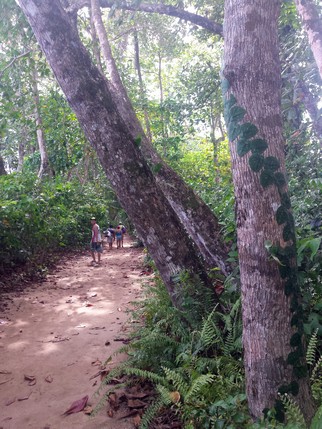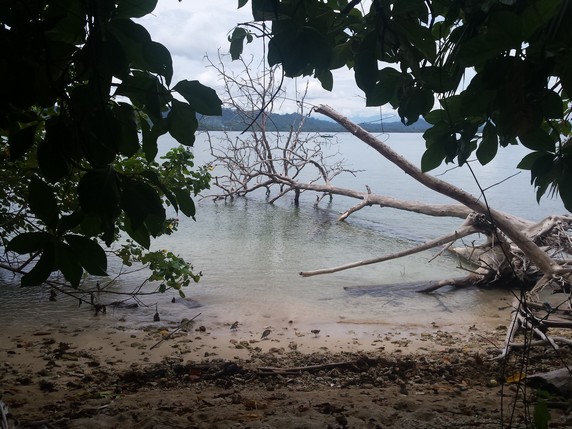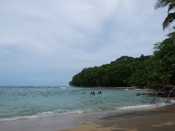 Nos planteamos hacer el camino que lleva hasta la playa de Punta Mona, una ruta de 11 km que combina tramos de playa y selva tropical. Pero nos dicen que el sendero no está bien marcado en su tramo de bosque, que es fácil perderse, que hay serpientes venenosas, y que es mejor que cojamos un guía. Como nos apetece ir por nuestra cuenta decidimos hacer hasta donde podamos, sin complicarnos mucho la vida. Como pasaremos por algunas zonas con arrecifes, aptas para el snorkel, preguntamos precios de alquiler del equipo (tubo, gafas y aletas), cuesta la friolera de 4$/h o 20$ hasta las 17h. Veremos la fauna marina desde la superficie.