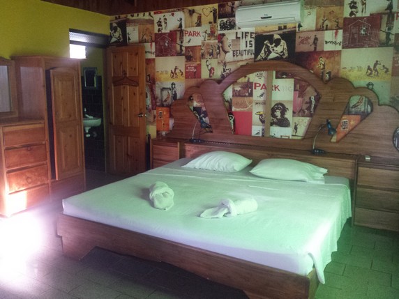 Walaba Hostel, 35$, Punta Uva. Las cosas no empiezan bien, en Booking ofertan una habitación doble con baño privado y cocina, que no existe, es un timo. La antipática dueña culpa a Booking, nos reconoce que lleva tiempo así, y no se la ve preocupada por ofertar algo que no existe. El rey de los