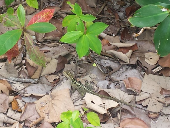 En Punta Cahuita vimos una raya pequeña paseando por la orilla y otra bastante grande (la cola hacia un metro y las alas extendidas tal vez dos). Después viene un tramo de manglares y bosque húmedo donde es fácil ver todo tipo de lagartijas, basiliscos, monos capuchinos de cara blanca, monos araña, monos aulladores, mapaches, coatíes, sapos, culebras, otros reptiles y muchos insectos. En los últimos 2 km un tramo de pasarelas de madera atraviesa un bosque tropical húmedo con árboles enormes. Durante unos metros nos acompaña un buitre que camina sobre la barandilla. Al inicio y final este tramo hay duchas y vestidores gratuitos.